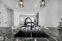 BRAND NEW Single-Family Home w/Legal Suite! Total 4 bed, 3.5 bath. Ideally located just 10 minutes to St. Albert & minutes from schools, parks, & grocery stores, this stunning custom-designed home truly has it all. From the moment you enter, a large front window floods the space w/natural light, highlighting the elegant living RM featuring a striking accent wall, beautifully detailed ceiling, & a stylish fireplace. The spacious dining area comfortably accommodates large family gatherings, while the corner L-shaped kitchen impresses w/floor-to-ceiling cabinetry, quartz countertops, & a generous island. The main floor is complete with a convenient laundry room, powder room, & a separate side entrance leading to a 1-bedroom, 1-bath legal basement suite, ideal for rental income or extended family. Upstairs, you’ll find a versatile office space, a spacious primary retreat, a large W/I closet w/built-in drawers, & a full ensuite bath. Two additional Bedrooms with a 2nd full bath. *Photos are of a similar home*