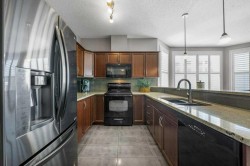 Welcome to this beautiful large corner "former show suite" - located on the main floor of the desirable Penncross complex. So much natural light from large windows throughout the living room and both bedrooms, this home offers a bright and open executive space. Thoughtful upgrades are found throughout, including high-end shutters on all windows, a corner built-in cabinet near the entry, a built-in "Murphy Bed" in the guest room, plus a full sized washer and dryer. The gourmet kitchen is large, with an abundance of cabinetry, plus granite counters, complimented by stainless steel appliances. The living room is spacious, allowing room for entertaining. The primary bedroom features a walk-in closet and a private updated 3-piece ensuite, while the second bedroom is generous in size and conveniently located next to a 4-piece main bathroom. Penncross offers outstanding amenities including a fitness centre, games room, library with fireplace, and indoor/outdoor putting greens—perfect for relaxing or entertaining. Just steps away is Crystal Ridge Golf Course, and your condo fees include year-round lake access to Crystal Shores. To top it all off, this unit comes with two titled underground parking stalls—a rare and valuable bonus. Enjoy executive-style living at an incredible value in one of Okotoks' most desirable communities!