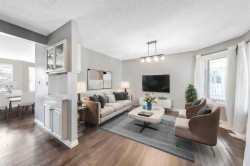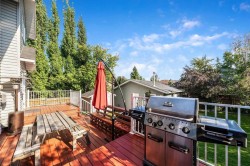 Don’t Miss Out on the Opportunity to Make This Character Home Your Own! Situated in one of Okotoks’ most coveted cul-de-sacs, this Westridge gem faces a picturesque park—perfect for family fun or a relaxing evening stroll. Designed with storybook charm, it captures the essence of a fairytale with steeply pitched roofs, a majestic turret, & a front porch that wraps to the side of the home, completing its timeless appeal. Flooded with character & natural light, this 2-storey residence offers over 2,930 sq. ft. of living space with 5 spacious bdrms, 3.5 bthrms, AIR CONDITIONING, & a SOUTH-facing backyard retreat featuring a 3-tiered deck. Step inside to a soaring, light-filled foyer.At the front of the home, an expansive formal dining room with a large bay window overlooks the park, while a versatile office/den—ideal for the inspired artist or home professional—also enjoys views of the majestic park.At the back of the home, the open-concept design seamlessly connects the kitchen & living area, where a cozy fireplace creates the perfect gathering place for family & friends. The kitchen is framed by its own bay windows overlooking the sun-drenched backyard, mirroring the front dining room bay window & filling both spaces with charm & natural light. It also features stainless steel appliances, ample cabinetry, & generous counter space. A powder room & main-floor laundry are also conveniently located near the back entry. Upstairs, you’ll find 3 generous bedrooms, a 4-piece bath, & a bonus room. Primary suite is a true retreat, highlighted by vaulted ceilings, elegant turret bay windows overlooking the park, & a 4-piece ensuite featuring HEATED FLOORING—perfectly toasty for winter-a large soaking tub, separate shower, & walk-in closet. The fully finished bsmt expands the living space with 2 additional bedrooms, a recreation rm, a newly renovated 3-piece bath, a family rm, & plenty of storage. Step outside to your private oasis: a spacious, south-facing yard with a 3-tiered deck, gas hook-up, & mature trees—perfect for summer entertaining. Set on a LARGE SOUTH-facing lot, the home is complemented by an OVERSIZED, HEATED DOUBLE GARAGE with 220V power, its own furnace, and dedicated workshop space. **Noteworthy Upgrades**: Every detail of this home reflects thoughtful care and quality. All windows, including the basement, were replaced in Mar 2025 w/ PlyGem triple-pane units (transferable warranty). New stove & microwave (Aug 2025) plus 2023 washer & dryer w/remaining warranty. New 2024 hot water tank (10-yr warranty) + 2023 water filtration system. Updated plumbing — NO Poly-B! Radon mitigation system (Oct 2024) for peace of mind where radon levels can run high. Furnace serviced annually for added efficiency. Perfectly positioned just minutes from top-rated schools, excellent amenities, & the scenic river pathway system, this home presents a rare opportunity to experience the very best of Okotoks living!