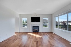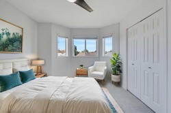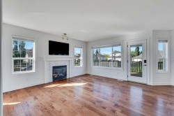 Meticulously well maintained 3-BEDROOM HOME with a SUPER FUNCTIONAL FLOOR PLAN and a DEVELOPED BASEMENT, offering 2228 SQFT OF LIVING SPACE. Ideally located just off the main road at the entrance to the community, the home sits in a QUIET POCKET WITH NO THROUGH TRAFFIC, backing onto GREEN SPACE & WALKING TRAILS—offering rare privacy and LAKE PRIVILEGES in a connected, amenity-rich location.The main floor features an OPEN-CONCEPT DESIGN with FRESH PAINT THROUGHOUT, NEW CARPET, NEWER ENGINEERED HARDWOOD FLOORING, a GAS FIREPLACE, and UPDATED LIGHTING. The kitchen includes NEWER APPLIANCES, ISLAND SEATING, and excellent storage with a LARGE PANTRY. As a CORNER UNIT, the home is filled with NATURAL LIGHT and offers added privacy, with no adjacent homes blocking the sun. The LIVING AND DINING AREAS connect seamlessly for both everyday living and entertaining.Upstairs, you'll find THREE BEDROOMS, including a spacious PRIMARY SUITE with a 4-PIECE ENSUITE and plenty of room for a KING-SIZED BED. A LARGE BONUS ROOM adds flexible space—perfect for a MEDIA ROOM, OFFICE, or PLAYROOM.The FULLY DEVELOPED BASEMENT offers a 2-PIECE BATHROOM, additional living space, and GENEROUS STORAGE.Enjoy outdoor living with a TWO-TIER DECK featuring a PRIVACY WALL and ENCLOSED STORAGE AREA BELOW. The LANDSCAPED YARD is designed for LOW MAINTENANCE and includes UNDERGROUND SPRINKLERS with DIRECT ACCESS TO THE GREEN SPACE.Additional upgrades include AIR CONDITIONING, a NEW ROOF WITH DRIP EDGE (2017), NEWER HOT WATER TANK, NEWER WASHER AND DRYER, and HUNTER DOUGLAS BLINDS. The HALF-BATH FEATURES HEATED FLOORING, and the home is PRE-WIRED FOR A FUTURE HOT TUB.