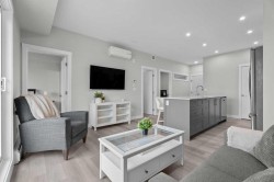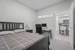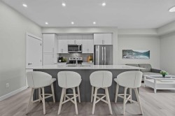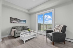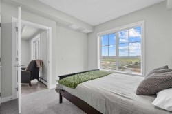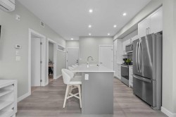Better Than New in Lawrie Park! Gorgeous new construction without the wait!!Welcome to this gorgeous, upgraded 2 bedroom, 2 bathroom TOP FLOOR condo in the desirable Lawrie Park building in Wedderburn, Okotoks. Still under warranty and loaded with thoughtful upgrades, this home blends comfort, function, and style.Step into a bright white kitchen featuring a massive island, quartz countertops, and durable LVP flooring throughout the main living space. The open concept layout is perfect for entertaining or everyday living. Both bedrooms are spacious, with the primary suite offering a full ensuite and great closet space.Extras like in suite laundry, air conditioning, and a large balcony (with mountain views on a clear day!) overlooking the dog park make this home even more appealing, especially in a pet friendly building! You'll also enjoy the convenience of a heated underground parking stall, separate storage locker, and low condo fees.Located in vibrant Wedderburn, you're close to walking paths, schools, and exciting new commercial development. This condo truly feels better than new, move in and enjoy maintenance free living at its finest!