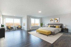 Welcome to 74 Cimarron Estates Drive — a showpiece of craftsmanship and thoughtful design in one of Okotoks’ most prestigious communities with some of the best views in town! Built by Fifth Avenue Homes, this property delivers over 4,600 square feet of beautifully finished living space and stands out for both its quality and versatility.The main level offers an immediate sense of volume and warmth, highlighted by soaring ceilings, massive windows, and a great room centered around a stunning gas fireplace with custom built-ins. The dining area opens to a full-width deck overlooking the backyard, making it perfect for hosting friends or relaxing in the evenings.The kitchen is the heart of this home — anchored by a large quartz island and finished with professional-grade stainless steel appliances, a walk-through butler’s pantry, and plenty of workspace for those who love to cook or entertain.On the main level, you’ll also find a large office and an additional bonus space, providing flexibility for families who need multiple work zones or a main-floor bedroom option. A well-appointed mudroom with direct garage access and a designer powder room complete this level.Upstairs, the primary suite feels like a private retreat, complete with a cozy sitting area, a luxurious five-piece ensuite, and an impressive walk-in closet. Two additional bedrooms, a four-piece bath, and a large laundry room with extra storage make the upper floor as functional as it is elegant.The fully developed walk-out basement extends the living space with a bright recreation area featuring a second fireplace and a wet bar, ideal for movie nights or hosting guests. There’s also a soundproofed fitness or music room, a full bathroom, and additional storage.Recent upgrades add tremendous value, including over $50,000 in exterior concrete work, Gemstone lighting, a tankless water heater, and dual high-efficiency furnaces. The exterior features durable composite siding and 30-year shingles, ensuring long-term peace of mind.Located in Cimarron Estates, this home is surrounded by walking paths, open spaces, and is just minutes from schools, shopping, restaurants, and the Sheep River. With Calgary’s South Health Campus only a short drive away, you’ll enjoy the best of both worlds — small-town charm with city convenience.