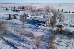 This exceptional 5-bedroom, 3-bath residence offers over 4,000 sq ft of beautifully appointed living space. It sits on 5 acres with sweeping mountain views and is set up for horses. Highlights include: extensive 2018 renovations, air conditioning, soaring ceilings, two fire places and a triple oversized garage. A striking entry with a curved staircase leads to a sun-filled living room featuring vaulted open-beam ceilings and a dramatic floor-to-ceiling stone wood-burning fireplace. The dining area opens to a west-facing deck, ideal for entertaining.The bright chef’s country kitchen is designed for gatherings, showcasing an oversized island, quartzite countertops, farmhouse sink, bar fridge, 6-burner gas range, and custom floor-to-ceiling cabinetry concealing the fridge/freezer. The spacious primary suite offers a walk-through closet and a spa-inspired 5-piece ensuite with a clawfoot tub.The walk-out lower level provides an inviting family retreat with fireplace, wet bar, generous entertaining space, two additional bedrooms, and a laundry/mudroom with garage access. The property features mature trees, garden or orchard areas, chain-link and pipe fencing, cross-fencing, a small barn, two stock waters, and a workshop.Perfect for a large family and entertaining, this exceptional home offers country living at its finest—just minutes from all amenities as it is conveniently situated between Okotoks and High River.
