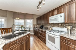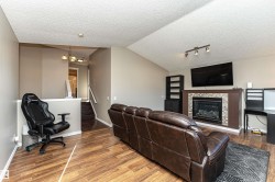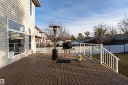 Stunning 2 story home with A/C & OVERSIZED, HEATED 24'x26' Garage on a huge SOUTH facing Pie lot (7,280 sq'). Extra RV/Boat parking at front. Over 2,600 sq' developed with laminate flooring thru-out, 3+1 Bedrooms, 3.5 Baths and a F/Fin Basement. Enjoy a huge deck with glass railing & gas BBQ hookup and a gorgeous landscaped flat back yard with Allan Block terracing at rear. Flowing, open main floor with high end laminate & large windows to yard. Gourmet extended kitchen features abundant cabinets, pot drawers, large island w breakfast bar & sink, walk in pantry, tiled backsplash, gas stove & new stainless steel fridge. The vaulted dinette has a garden door to deck. Upper floor features a vaulted Bonus room with window seat & gas FP. The primary Bedroom includes a walk in closet with room for a king-size bed plus a luxurious spa with jetted tub. The Finished Basement has a 4th Bedroom, 3pc Bath, Family Rm, & lots of Storage. New shingles 2020. Close to Tri Leisure Ctr, parks, schools, transit & shopping.