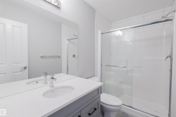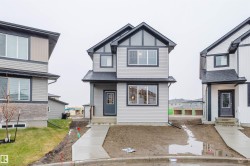 FULL BED & BATH ON MAIN! Award-winning Crystal Creek Homes presents this stunning two-storey 4 bed, 3 bath detached home in the highly desirable community of Prescott in Spruce Grove. This home offers a perfect blend of modern style and comfort on an generous pie shaped lot. The open-concept main floor features a spacious living room with fireplace, modern kitchen, pantry, and dining area. The main floor also includes a bedroom and a full bathroom, perfect for guests or additional living space. Upstairs, you'll find a versatile bonus room, convenient walk-in laundry, a 4-piece bathroom, and 3 generously sized bedrooms. The primary suite boasts a walk-in closet and a private ensuite with shower. This home also comes with a $5,000 appliance credit, a separate side entrance to the basement, and a triple detached garage! Don't miss your opportunity to make it yours. QUICK POSSESSION! First 26 photos are of the same model (interior colors differ) rest are of the home.