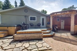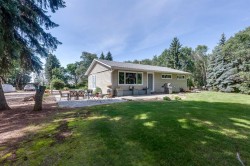 An acreageand still with in the boundaries of the town of Stettler(3 acres) . Many beautiful extras including park like grounds, a garden plot - many fruit trees in full production –an amazing tree house(heated), additional storage for your mower and outside equipment, a hot tub area, a gazebo setting and bbq setting and so many more tastefully developed areas. Lots of recent upgrading including an open, spacious floor plan c/w windows, doors, fixtures, flooring and modern appliances. There’s a country style kitchen along with an eat in bar and separate dining area, the living room is bright and open and has a set of patio doors leading to a deck. The master suite features a supersized walk-in closet and a 3 piece ensuite bath including a 5 foot shower and again patio doors to another private area. The basement is all but completed just the utility room is untouched. The furnace and hot water system are both upgraded along with water well system. There’s a large recreation area, as well as an office/bedroom/den. The oversized fully finished garage can be accessed thru the mud room or thru 2 other walk in doors. All in all there are 3 private decks and a separate patio within setting in and around this beautiful home - come have a look - you won't be disappointed.