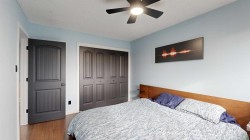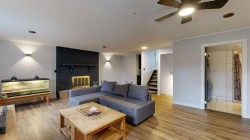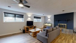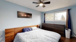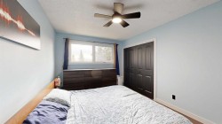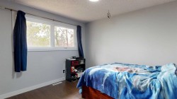 Welcome to this beautiful 4-level split home on a 0.22-acre lot near the edge of town — offering privacy, modern comfort, and a great family lifestyle. With no residential neighbors in front, you can enjoy peaceful surroundings while still being close to everyday conveniences. Step into the spacious front entrance that opens into a bright, open-concept main level with beautiful, real hardwood flooring. The living room has plenty of room for family gatherings, with a large front window that brings in natural light. The kitchen stands out with its bold, modern design — featuring sleek cabinetry, stainless steel appliances (including a wine fridge and vent hood), a pull-out coffee bar, and pantry. It flows seamlessly into the dining area, where garden doors lead to a covered deck perfect for family barbecues and summer evenings outdoors. A cement patio extends along the back of the home, creating even more space for entertaining. Upstairs, you will find three comfortable bedrooms and a modern 4-piece bathroom with custom tile and a stone countertop. One level down, the spacious family room has a fireplace and built-in wall cabinets with display shelving and lighting. This space offers endless possibilities — from a home theatre for entertaining to a cozy retreat, A second bathroom with tiled shower and pedestal sink also serves as a laundry area with front-load washer and dryer. The lowest level adds even more flexibility with two additional rooms that can be used as bedrooms, a home gym, craft space, or office — perfect for a growing family or guests. The front yard offers great curb appeal with a cement driveway leading to the attached single car garage, complete with shelving and a full wall of pegboard to keep everything neatly organized. Mature trees provide natural shade and privacy, while flower beds add a welcoming touch of color and charm. You will love the large fenced backyard with mature trees, a fenced-in raspberry patch, garden area, and extra garage with more parking at the back. This home is located in a welcoming neighborhood with a playground and community garden just down the street. The walking path across the street leads to retail shops, restaurants, and the mall — everything your family needs, just steps away. A modern, move-in ready home designed for family living — with space to grow, play, and relax.