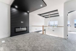 BACKING TO PARK || Gorgeous Fully Upgraded Home with Double Garage in Stony Plain! This custom-built beauty is a dream come true! The main floor features a versatile den/office (could be used as a bedroom) with stunning feature wall, a half bath, and a chef-inspired kitchen with a unique center island and spacious pantry. Extended Kitchen. The Open to above living area boasts a striking custom wall, creating a stunning view, while the dining room opens to a deck, perfect for entertaining. Upstairs, you'll find a spacious bonus room with beautiful feature wall & fireplace. A huge primary bedroom with stunning ceiling design & own private balcony overlooking park, a luxurious 5-piece ensuite with a walk-in closet. Two more bedrooms with feature wall in each & closet in each bedroom. Common bathroom on upper level. For added convenience, the laundry is located on the second floor. The unfinished basement with SEPARATE ENTRANCE is full of potential for your personal touch.