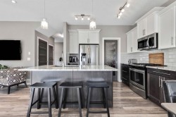 OPEN HOUSE SATURDAY NOV 15 12pm-2pm This thoughtfully laid-out home features 4 bedrooms – 3 upstairs and 1 downstairs – along with a spacious bonus room. The bright, open-concept main floor is ideal for entertaining, featuring a modern kitchen with stainless steel appliances, granite countertops, solid wood cabinetry, gas stove, kitchen island, and a generous dining area. The living room includes a fireplace, creating a warm and inviting atmosphere. A 2-piece powder room, functional mudroom with walk-through pantry complete the main level. Upstairs with the 3 bedrooms features a laundry area which makes laundry breeze, along with a bonus room (currently used as a bedroom). Hunter Douglas blinds throughout the home. Downstairs, the fully developed basement offers a large family room, a 4-piece bathroom, and a large private bedroom — great for guests, teens, or multigenerational living.Step outside to a low-maintenance backyard with a tiered deck and pergola, ideal for relaxing or entertaining. The double attached garage (18’ x 23’5”) includes storage space.Located in a family-friendly neighborhood close to parks, walking paths, and amenities, this home checks all the boxes.