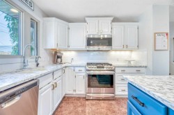 Welcome to this stunning split level home showcasing timeless brick curb appeal and a private, treed backyard that’s beautifully landscaped for both relaxation and entertaining. Step inside and you’ll find modern touches throughout—sleek lighting, contemporary railings, and a perfect mix of hardwood and tile floors. The bright white kitchen is a chef’s dream, featuring an island with granite countertops, a gas stove, and seamless flow into the dining area—perfect for family meals or hosting friends. At the front of the home, the living room offers a warm, welcoming space to gather.Upstairs, you’ll find three spacious bedrooms, including the primary suite with a walk-in closet and a stylishly updated 3-piece ensuite. A 3-piece main bath completes this level. The third level expands your living space with a large family room, a 3-piece bath, and a convenient mudroom. The finished basement adds even more flexibility with an additional bedroom and rec room. With its combination of charm, function, and plenty of room for everyone, this home is ready to welcome its next family. This home is situated an a huge lot with front yard views of a beautiful green space and park- gorgeous sunsets and Mountain Views in the morning! The maintenance free exterior offers peace of mind to a buyer and showcases the thougtfulness put into the design of the home! If you are looking for space to raise a family, enjoy all that Strathmore has to offer Call this one your! Amazing access to schools, shopping, pathways, parks- this one is a MUST SEE!