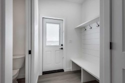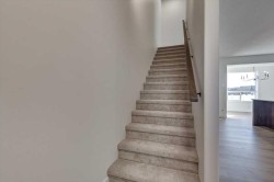 END UNIT!! And INCLUDES FENCE, SOD, BLINDS & 6 APPLIANCES with NO Condo Fees! Brand New, Stylish, modern 2 Storey Townhomes in the new area of Iron Gate for Immediate possession! Say Goodbye to the stress of older homes & get Alberta New Home Warranty plus additional builder warranty by winner of the 2024 Builder of year award, Asset Builders Corp. Step onto your 7'x7' front deck, into your spacious entry & you are greeted by a bright & spacious open layout on this main floor. Check out all the natural sunlight through these large energy efficient triple pane windows & you will love this amazing vinyl plank flooring throughout w/cushy carpet in the bedrooms upstairs. The kitchen is the heart of the home, with a large island w/extended Quartz countertops (perfect for your stools, kids homework sessions, or long chats while cooking), built in pantry area, & 4 appliances included. Dining room will fit your large tables & extra family members. The favorite space of all parents out there is this back entry w/half bath @ the back door that leads to your 10'6"x10' back deck w/aluminum railing & sunny south facing backyard for all those sun worshippers out there, with full fence from back of unit towards 20x20 gravel parking area, room for 2 car parking off paved back lane. Upstairs you will find the handy laundry room, 2 good sized bedrooms, a full main bath + a Primary bedroom that features a large walk in closet & full 4 piece ensuite. Extra bonus is the huge hallway closets that make the best use of space! Downstairs is open for your inspiration, planned for future bdrm, bath & family room w/plenty of natural light & extra storage. GST included w/rebate to builder. This newer neighborhood is close to shopping, food & highway. A single detached garage can be built on this property in the future.