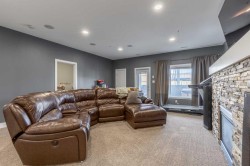 Welcome to 5401 43 Street in Taber — an exceptional family home situated on a quiet corner lot, thoughtfully designed with comfort, function, and modern elegance in mind. The exterior impresses with striking curb appeal, featuring Hardie board siding with smart trim accents, exposed aggregate concrete, PVC windows, and maintenance-free handrails. The fully fenced and professionally landscaped yard includes a stamped concrete patio that also doubles as R.V. parking, a covered lower patio ideal for a future hot tub, and a spacious back deck — the perfect place to enjoy peaceful, east-facing sunrises. A charming front porch invites you to start your mornings with a coffee in hand.Inside, the main level is bright and open, enhanced by vaulted ceilings and an airy, functional layout. The kitchen is beautifully appointed with quartz countertops, a large island with an undermount sink, updated appliances, a pantry, garburator, and tile backsplash. The adjacent dining and living spaces are warm and inviting, centered around a gas fireplace and built-in desk area, and complemented by a full-home speaker system—ideal for everyday living and entertaining. Privately situated above the garage, the spacious primary suite offers a quiet retreat. It features a tray ceiling with ambient mood lighting, access to a private balcony, an expansive walk-in closet, and a luxurious 6-piece ensuite with an extra-long soaker tub, dual vanities, and generous built-in storage. Two additional well-sized bedrooms and a stylish 4-piece bathroom complete the main floor. The fully finished basement offers 9’ ceilings, a large family room with a second gas fireplace, two more generously sized bedrooms—each with walk-in closets—a 4-piece bathroom, and a wet bar. Comfort and practicality continue with in-floor heating, air conditioning, and rough-ins for central vacuum. Additional highlights include a heated double attached garage, underground sprinklers, exposed aggregate front steps, an outdoor speaker system, and durable asphalt shingles. Perfectly located just minutes from schools, parks, and all amenities Taber has to offer, this beautifully maintained home is an ideal choice for families seeking space, style, and functionality