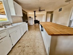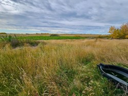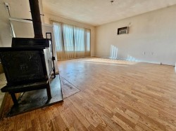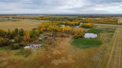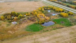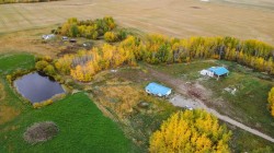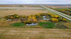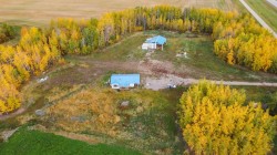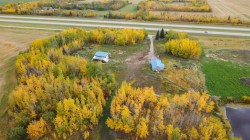 Basic tin-roof bungalow plus a shop on 22 acres features two bedrooms, laundry room with kitchen open to living room area anchored by a wood fireplace for cozy heat. Shop's enclosed area about 18' X 42' with about 14' high door (with overhang 36' X 42' overall). Balanced mix of trees and open space to suit any rural lifestyle. Dugout for water and diesel oil furnace. Old drilled well on site too. 18 km south of Valleyview set back from highway 43. Great privacy yet close enough to town for conveniences.