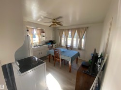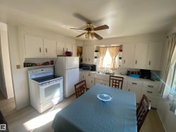 Check out this Great starter or retirement home! Very clean well cared for home located on the South Side of Vegreville! This comfy home has seen lots of updates including vinyl flooring, bathroom, outside screen doors, hot water heater, high efficient furnace, washer, dryer, the list goes on. House is situated on a large mature yard, 50 x 140 Lot with a long single garage , new asphalt driveway and plenty of room for RV parking.