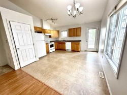 This 2 bedroom bungalow townhouse has plenty to offer. Located close to shopping and other amenities, it is great for first time buyers, and empty nesters alike. The yard is fenced, and landscaped with a deck off kitchen. There is an attached garage with access to inside the home from garage. The interior features an open concept living area with a four piece bath, ample cabinets in kitchen, dining area, two large bedrooms, living room & main floor laundry . Basement area is undeveloped and ready for you to customize to your liking.