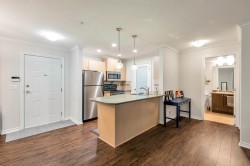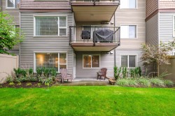 Beautiful 2 bed, 2 bath ground floor condo in the Cobblestone complex. Located close to parks and shopping this west facing unit is on the private side of the building and has a walk out covered patio leading to the large common grass area, ideal for outdoor entertaining. Great layout and use of space with plenty of storage, including a walk in closet in the primary bedroom and walk in shower in ensuite. Bedrooms are on opposite sides with the 2nd bathroom next to the bedroom. 1 parking space, lots of visitor parking, Pet restrictions are 2 cats or 2 dogs, either 20 inches high max at the shoulder or 20 pounds max weight.