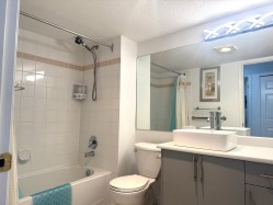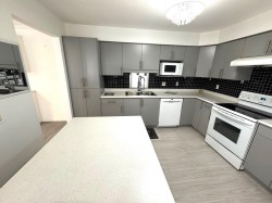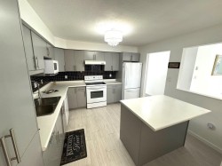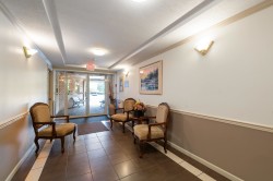 Move in ready fully renovated corner unit at Tiffany Park! This stunning 1217 sq. ft. 2 bed, 2 bath home has a great layout with generous sized rooms and tons of storage space. Tastefully updated featuring a new gourmet kitchen with island, new appliances, new flooring, new light fixtures, updated bathrooms. Being a corner unit you get lots of additional windows which provide great natural light . Situated on the quiet side of the building. This 55+ adult oriented complex is centrally located, walking distance to shopping, restaurants, parks, recreation & a short walk to Mill Lake. 1 underground parking stall included, pets are not allowed. Bonus: Heat, hot water, gas & electricity are included in the Strata fee!