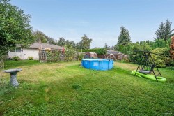 Spacious 5-bedroom rancher with full basement on a large, flat lot in central Abbotsford—perfect for families, investors, or developers. Features 3 bedrooms on the main, a modern kitchen with tile floors, bright living room, dining area, and updated 3-piece bath. Walk out to a massive 23' x 43' deck and covered porch—ideal for entertaining. Downstairs offers 2 more bedrooms, a den, living room, music room, storage, laundry, and a separate entrance with suite potential. Includes garage, carport, RV parking, newer windows, boiler, hot water tank, and roof (2007). Great location near schools, transit, and shopping. Potential future development—check with the City of Abbotsford. A rare opportunity!