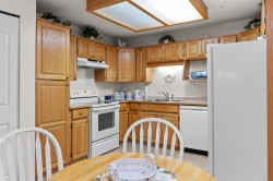 Don't miss out on this desirable location! The Oaks at Centennial Court, conveniently located near shopping, recreation & Mill Lake. This 2 bedroom/2 bathroom condo faces the courtyard and is very clean and well maintained. The layout is great with one bedroom & one bathroom on each side of the unit. This home feels open and spacious, the living room has a nice gas fireplace and access to the deck where you can enjoy your morning coffee. The laundry room has ample extra space for extra storage. The complex has fantastic amenities including an indoor pool, steam room, hot tub, fitness room, library, large meeting room and the courtyard has a great gazebo. This is 55+ living, pets are not permitted. Book a viewing today!
