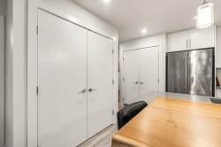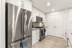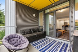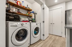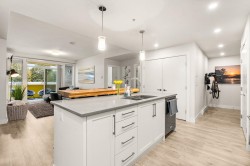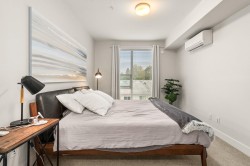 Welcome to Mill District — where modern living meets unbeatable convenience. This bright and stylish 2-bedroom, 2-bathroom home is ideally situated in one of Abbotsford’s most central locations, just steps from Mill Lake Park and surrounded by mountain views. Inside, enjoy high ceilings, granite countertops, premium KitchenAid appliances with a gas range, and a spacious kitchen complete with a large pantry. The home features laminate flooring, side-by-side washer and dryer, and air conditioning for year-round comfort. Both bedrooms include walk-in closets and private en-suite bathrooms, with the primary offering a double vanity and glass-door rain shower. Step outside to a large, west-facing patio with unobstructed views and a gas BBQ hookup — perfect for relaxing evenings or entertaining.