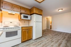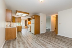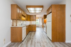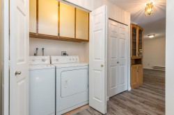 Discover this beautifully updated 2-bedroom, 2-bathroom upper unit in the desirable Trafalgar Park, a 55+ complex where pets are welcome. This home features a great floor plan with spacious rooms and abundant natural light from numerous windows. Enjoy the convenience of a good-sized laundry room and an extra storage area off the balcony. Recent updates include laminate floors, enhancing the unit's modern appeal. The strata fee covers electricity, heat, and hot water, ensuring hassle-free monthly maintenance. The well-managed strata offers fantastic amenities for residents. Situated close to parks, shopping, and restaurants, this location provides the perfect blend of comfort and convenience. Don't miss this wonderful opportunity to make Trafalgar Park your new home!