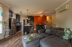 Top floor, Corner Unit in the Element. Huge Bonus: 3 underground parking spots. This home is south westerly exposed with wrap around deck. It is air conditioned and has open great room feel that is accentuated by the 9 foot ceilings. 2bdrms and 2 bath with the bedrooms being on the opposite side of the unit that is perfect for roommate or late night gaming. Separate storage locker is on the same floor. Quick possession is possible. One Pet limited to 22Lbs or 22 Inches. Onsite Property Manager keeps the building running smoothly. The Element is centrally located with easy access to freeway, University, Mill Lake and shops.
