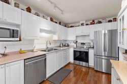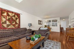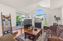 Beautiful penthouse on the quiet side of the building with vaulted ceilings and a north-facing exposure that stays cool in summer. Enjoy the largest deck in the complex, perfect for year-round use, plus large windows for great natural light. Meticulously maintained with all new fridge, stove, dishwasher, and washer/dryer, along with a modern fireplace. Move-in ready in a 55+ community that shows pride of ownership.