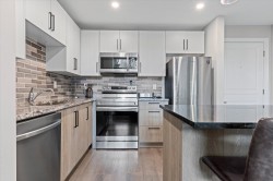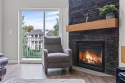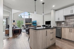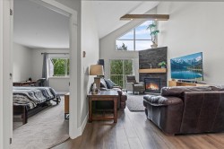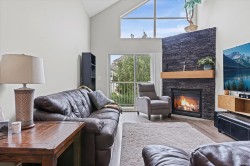 This Elegant top-floor 1 bed, 1 bath penthouse offering vaulted ceilings, exposed wood beams with designer lighting, and a striking stone-faced gas fireplace. Tastefully updated with new appliances and modern finishes throughout. Positioned on the quiet, shaded side of the building for year-round comfort. This exclusive residence blends sophistication, warmth, and tranquility in a highly central location near shops, cafes, and parks—an ideal sanctuary for discerning buyers seeking elevated, low-maintenance living. Come Check it out today!
