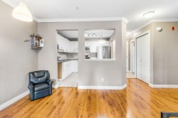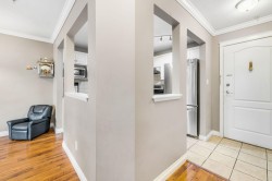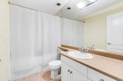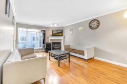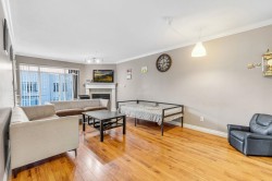 This top-floor, bright, and spacious unit at Arbour Court offers over 1,000 sqft of thoughtfully designed living space with 2 bedrooms, 2 bathrooms and 2 Parking. The open layout features a cozy gas fireplace, elegant laminate flooring, and a modern white kitchen with stainless steel appliances. Crown moulding adds sophistication, and large windows showcase views of the inner courtyard and North Shore Mountains. The primary bedroom has an ensuite, plus a second bedroom with a shared bath. Enjoy in-suite laundry, additional storage, and proximity to transit, shopping, recreation, and John MacLure School.