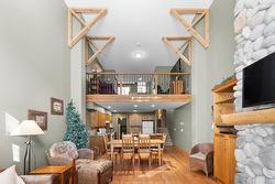 Welcome to Tree Tops, one of Big White’s most sought-after developments offering true ski-in/ski-out convenience via the Mogul Cat Track. This 2 Bed/3 Bath townhome combines mountain charm with modern comfort, making it the perfect getaway for family, friends, or rental guests. Step inside to an airy, open-concept layout highlighted by soaring ceilings & abundance of natural light. The main living area features a stunning floor-to-ceiling river-rock fireplace surrounded by custom built-ins—the ideal centerpiece for cozy evenings after a day on the slopes. Just off the living room, you’ll find your private hot tub, a perfect spot to unwind under the stars. The large kitchen is designed for entertaining with shaker cabinetry, a sit-up island, and plenty of prep space. A versatile loft overlooks the living area, providing a fun hangout for kids and includes a sofa bed for extra sleeping accommodations. Upstairs, both bedrooms offer private ensuites, while one also includes a flex/den space that can easily be used as an additional sleeping area. With a variety of flexible layouts, this home is well-suited to host multiple families or groups. The timeless design blends rich tones, wood accents, & a cozy mountain feel throughout. Additional conveniences include a covered parking stall directly across from the unit & two storage lockers-one for owners and one for guests. This turnkey property is equally perfect as your personal mountain retreat or a high-demand rental investment!
