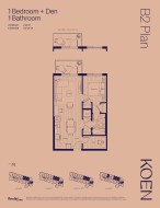 Discover easy living in this 1-bed + den, 1-bath home at Koen by Beedie Living. Enjoy over 600 sq ft of well-planned home space plus a private balcony. The spacious bedroom offers direct access to the bathroom for everyday ease. The kitchen is stylish and functional with clever storage like a tiered pull-out shelving unit and hidden eco-recycling hub, complete with a Porter & Charles appliance package. The versatile den is perfect for a home office or reading nook. Residents can enjoy access to premium amenities including an entertainment lounge, outdoor lounge with BBQ and fire table, interactive children's play area, fitness centre and more. At Koen, live just minutes from Metropolis at Metrotown, Station Square, and Royal Oak SkyTrain Station.