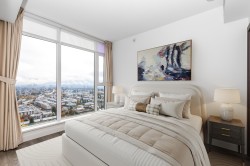Met 2 by Concord Pacific - located across to desirable Metrotown Shopping Centre. This elegant NE corner of 2 bed+2 bath unit offers a sophisticated urban lifestyle with breathtaking panoramic views of the city, mountains and lake. This home features laminate flooring throughout and freshly painted interiors. The unit features a luxury modern design including: centralized heating and A/C, 8'8" high ceiling, roller-shade window coverings, European appliances, 5-heads gas cooktop, quartz stone countertop; marble tile backsplash, marble tile flooring and a huge balcony for entertaining. Amenities incl.: lounge, indoor pool, hot tub, sauna/steam room, dance/studio/games room, lawn bowling, fitness center, Karaoke lounge, outdoor BBQ and HD Golf simulator. Best view best layout!