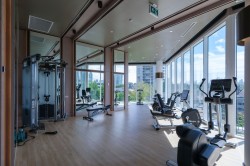 Experience elevated urban living in the heart of Brentwood with this stunning 3-bedroom, 3-bath residence. Boasting a thoughtfully designed layout, this home features expansive southwest views from a generous balcony - perfect for relaxing or entertaining. The modern kitchen is outfitted with premium appliances and sleek finishes, while the comfort of air conditioning ensures year-round enjoyment. Upgrades include an intelligent thermostat and custom smart-design closets with LED lighting. Comes with 2 EV parking stalls on P2 and a storage locker. Residents enjoy resort-style amenities: full gym, yoga studio, entertainment lounge, and the peace of mind of 24/7 concierge service.