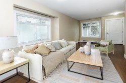 1 BEDROOM+DEN garden townhome, with huge private patio is perfect for first time home buyers or pet lovers, investors. Step into your 638 sq ft of smartly designed living space featuring: large house sized kitchen with stainless steel appliances, granite counters & breakfast bar. Southeast-facing living/dining area with laminate floors, bay window. A large primary bedroom, plus a versatile den with window, perfect for home office. Offers 160 sq ft private patio for BBQs with quiet courtyard setting. Pet and rental friendly, one parking is included. Low maintenance fee. Prime Burnaby location at Kingsway & 14th Avenue, close to shopping, restaurants, library, Edmonds Community Centre, schools and minutes to Sky train station, transit.