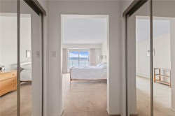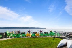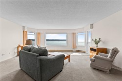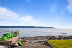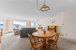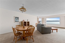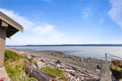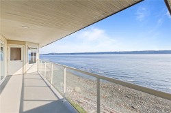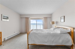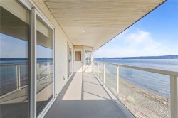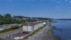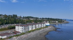 Discover top-floor oceanfront living at Ocean Shores! This bright condo offers breathtaking views of Discovery Passage, where you can watch sunrises, passing marine life, and coastal scenery right from your windows. The spacious layout features a functional kitchen, large living area, and sliding doors from both bedrooms leading to the expansive balcony. The primary suite includes a walk-in closet and full ensuite with tub and shower, while a second bathroom with shower is conveniently located near the guest bedroom. Skylights in the entry and ensuite add natural light, and in-suite laundry plus ample storage make life easy. Residents enjoy incredible amenities including a beachfront gathering house, oceanfront firepit and BBQ area, and a workshop. Embrace a lifestyle where the ocean is at your doorstep!