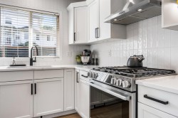 MOVE IN READY family home on one of Promontory's most desirable streets! Sitting proudly at the top of a picturesque cul-de-sac w/ lovely mountain views, this 5 bdrm & den home w/ RV parking awaits! Upper main level featuring new vinyl plank flooring, modern pot lights, stylish light fixtures & a completely RENOVATED kitchen w/ white shaker cabinets, chic subway tile backsplash & SS appliances. The spacious living room w/ gas fp connects to a bright eating area w/ direct access to the FULLY FENCED backyard - just open the door & let the kids & pets run right outside! Large primary bedroom w/ stunning 3pc ensuite. The finished basement offers a rec room, hobby space, laundry room & two additional bedrooms(1 w/o closet). CENTRAL A/C, dbl garage, RV parking & walking distance to school! WOW!