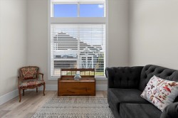 Welcome to Elysian Village! This spacious 3-bedroom rancher with loft is set on one of the largest corner lots in the community. The thoughtfully designed floor plan offers a primary bedroom and den on the main level, plus two additional bedrooms and a generous open loft upstairs. Enjoy high-end finishes throughout, including quartz countertops, a chef’s kitchen with gas range, and built-in cabinets in the laundry room. Relax in your fully fenced yard featuring a covered patio, natural gas BBQ hookup, and hot tub—all with unobstructed views of Mt. Cheam. Additional highlights include air conditioning, a full 5' crawl space for storage, a double garage, and driveway parking for up to eight vehicles. This home combines luxury, comfort, and functionality in a prime setting.