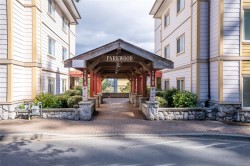 Welcome to Unit 402 at 364 Goldstream Ave., a bright & spacious top-floor condo offering 923 sq. ft. of comfortable living with 9' ceilings and a functional 2-bedroom, 2-bath layout in a highly walkable Langford location. The open-concept design features a full-size kitchen with ample cabinetry and peninsula seating, flowing into the dining and living areas with a cozy electric fireplace and large windows for natural light. An oversized covered balcony provides year-round outdoor enjoyment. Bedrooms are well separated, including a primary suite with walk-in closet and 3-piece ensuite. The second bedroom, with a built-in wall bed, doubles as a guest room, office, or hobby space. A 4-piece bathroom, in-suite laundry, and good storage add convenience. The well-maintained building includes secure underground parking. With immediate possession and shops, cafés, transit, parks & trails nearby, this home is ideal for first-time buyers, downsizers, or anyone seeking walkable Westshore living.