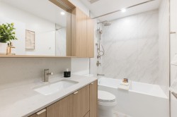 Alina by Strand is a striking 29-storey tower located on a quiet street in West Coquitlam. Completing summer 2025, this near move-in ready, over 18 ft wide 2-bedroom + flex , 2.5-bathroom townhome offers 1042 sq. ft. of thoughtfully designed space across two levels. Just steps from Burquitlam Station, it provides easy access to Greater Vancouver while being close to walking trails and shopping. The open-concept main floor features a spacious living, dining, and kitchen area with large windows that fill the home with natural light. The primary bedroom includes a private ensuite and walk-in closet, with bonus storage under the stairs. Additional features include a powder room, dedicated workspace, side-by-side washer/dryer, and an EV-ready parking stall. Contact our sales team today to learn