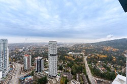 Step into bright, contemporary penthouse luxury in the iconic tower by Marcon. This stunning 2-bedroom + den, 2-bath residence soars above the city, offering breathtaking southwest views that stretch to the horizon. Inside, discover a refined interior featuring premium stainless steel appliances, quartz countertops, custom cabinetry, rich hardwood flooring, and spa-inspired bathrooms with travertine tile. Enjoy rare convenience with two side-by-side parking stalls and indulge in over 20,000 sq ft of curated amenities: a full-scale fitness centre, yoga studio, indoor basketball court, sauna, karaoke room, guest suites, rooftop lounge, and more. Located steps from shopping, dining, and the Evergreen SkyTrain Line—this is urban living at its peak. OPEN HOUSE: SAT, NOV 15, 2-4pm