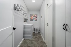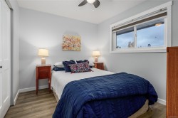 Beautifully & completely redone 2 bedroom, second floor condo: all you have to do is unpack!!! Previous owner worked for a local cabinet making company and had all kitchen & bathroom cabinets replaced, even added extra ones in the laundry room. Flooring, lighting, plumbing fixtures, kitchen backsplash, bathroom vanity: all redone. Fridge and stove replaced with stainless steel appliances, hood vent replaced with an OTR microwave. Insuite laundry doubles as storage room, and has updated washer & dryer. Owner occupied so fairly quick possession is possible. All new vinyl windows and patio doors replaced in the whole complex in 2023. $67,000 in the CRF. Easy to show.