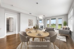 Spacious 2-bedroom, 2-bathroom Condo at Tsawwassen Springs offering 1,127 sq. ft. of open-concept living. This home features a gourmet kitchen, bright living and dining areas, and a large covered deck with BBQ hookup showcasing golf course and mountain views. The primary bedroom includes a walk-in closet and ensuite, with a second bedroom and full bath for guests or office use. Additional highlights include a storage room, and secure underground parking. Located in a sought-after resort community with golf, fitness, dining, and amenities just steps away.