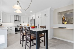Beautifully updated 5-bed + Den, 3-bath in sought-after Sunshine Hills! This move-in ready, elegant home blends modern comfort with timeless style. The recently renovated kitchen features solid wood cabinetry, quartz countertops, tile backsplash, durable vinyl tile flooring, and a dedicated coffee station + thoughtful storage solutions including blind-corner pullouts and roll-out pantry drawers. The main floor offers eng. hardwood, while upstairs boasts new carpet in four spacious bedrooms + a den which can be used as a 6th bedroom. Laundry & bedroom located on the main. All three bathrooms, including the luxurious ensuite, have been tastefully renovated. With a newer furnace, HWT, & roof, this home delivers lasting quality and peace of mind. Your dream home in Sunshine Hills awaits!