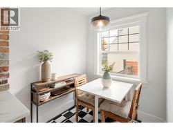 Set along one of Kelowna South’s most admired heritage streets, this Art Deco character home blends timeless appeal with meaningful modern updates. The arched front entry creates an immediate sense of arrival, while classic details throughout reflect the charm of this established neighbourhood. Inside, fir flooring, coved ceilings, fresh paint, and updated light fixtures create a bright and welcoming living space anchored by a gas fireplace. The kitchen features quartz countertops, quality custom cabinetry, subway tile backsplash, black-and-white tile flooring, and an exposed brick feature wall, complemented by a cozy eating nook for everyday living. Two well-proportioned bedrooms are served by a four-piece bathroom with updated vanity and tiled finishes. A rear mudroom and laundry area opens to a large sun deck and fenced backyard, providing a comfortable outdoor extension of the home. A detached single garage and ample additional parking complete the property. Located within walking distance to downtown Kelowna, the lake, beaches, shops, and restaurants, this is a rare opportunity to secure a character home in one of Kelowna South’s most desirable heritage pockets. All windows have been replaced. Estate sale. Property sold “as is.” Probate granted. Quick possession possible. (id:27)