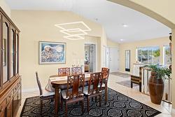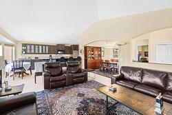 The open-concept main living area is filled with natural light, with expansive windows framing the spectacular scenery. The modern kitchen combines both style and function, offering new cabinetry, ample counter space, and an island perfect for casual dining or entertaining. The adjacent dining and living areas flow seamlessly together, creating an ideal space for gatherings.