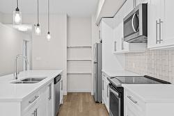 Introducing an extraordinary opportunity at Green Square—an exceptional condo that sets the bar for modern Lower Mission living. Perfectly situated on Mission Springs Dr, this home offers unmatched walkable convenience to some of Kelowna's best beaches, boutique shopping, restaurants, recreation like the H2O Centre and bike trails. This spacious floor plan offers 892 sqft. of thoughtfully designed space with 2 bedrooms, 2 bathrooms, 1 secure underground parking stall and a external storage locker! The open-concept layout welcomes you with abundant natural light from the large bright windows. High-end finishes include quartz countertops, European-inspired flat panel cabinetry, chrome fixtures, and stainless steel appliances, creating a sleek contemporary feel. Step onto the covered, SW-facing corner patio with a gas BBQ hookup—ideal for relaxing or entertaining. Green Square delivers an impressive array of lifestyle amenities for the development: enjoy the rooftop patio, tend to the community garden, or stay active in the fitness facility. Added conveniences include a dog/bike wash station and secure bike storage. A rare offering in one of Kelowna’s most desirable neighbourhoods. This home is vacant and ready for a quick possession!