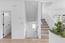 Bright & Modern End Unit in Rockridge at The Lakes. A vibrant and family/pet friendly townhome community in the heart of Lake Country. This stylish 3-bedroom + den/flex, 3-bathroom end unit offers the perfect blend of space, functionality, and comfort. Flooded with natural light, the main floor showcases a modern open-concept design with large windows throughout. The kitchen is a true highlight, featuring quartz countertops, a gas range, sit-up island, and cozy eating nook. The layout flows seamlessly into a spacious dining area and bright living room—perfect for everyday living and entertaining. Step out from the kitchen to your private, elevated backyard oasis with panoramic Eastern Mountain views. With no units directly behind, you’ll enjoy added privacy along with a gas hookup, power, and water connection. Upstairs you’ll find three well-appointed bedrooms, including a generous primary suite with a 4-piece ensuite. The laundry is conveniently located on this level as well. The lower level adds valuable flexibility with a den/flex room – perfect for a home office, gym, or guest space. Additional features include a double car garage, a full-length 26 ft driveway that easily accommodates most vehicles, and close proximity to visitor parking—making hosting friends and family a breeze. This home truly has it all—modern comfort, unbeatable functionality, and a fantastic location.