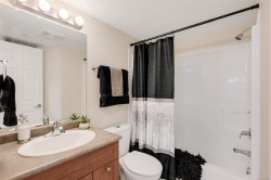 Vacant. Its gotta go! Set way back from any busy roads; quiet, bright & west facing 2 BR & 2 full BA! Eventually will be backing onto Langford’s new 6-acre park. Traffic is pretty easy from here. Ruth King Elementary School is pretty much on the block. Spacious open floor plan with BRs on opposite ends, each coupled with their own 4-piece bath. Perfect family home or roommate opportunity. So close to new U-Vic Campus! 5-minute walk? New paint & most light fixtures. A past update included newer laminate flooring. The primary BR has a 4-piece ensuite bath & the access to the covered deck. Unusually large kitchen with 3-4 bar-stool spots at the open countertop bar, where the friends & family will gather & certainly please the household chef. Stacking washer & drier are within a closet beside the main bath. 2 dogs – no pound limit are welcome, (or 2 cats or 1 of each), no age restrictions, BBQ’s are approved. Unrestricted rentals at this well managed strata. Make an offer! Great spot!