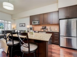 New Price!! 394900! Top Floor 1 bed 1 bath with Secured underground parking. Located on southern Vancouver Island, a region known for a mild year round climate, favorable to outdoor sports enthusiasts, the Bear Mountain Resort Community offers two 36 hole Nicklaus Designed golf courses, world class tennis facilities & close proximity to hiking and MTB trails. This beautiful top floor condo offers a bright southwest view over the directly adjacent 9th hole on the Mountain Course. Built in 2007 this west coast styled non-smoking building allows rentals, BBQs and pets (no size or weight restriction). This 1 bed, 1 bath, 553 sqft. home with 10' ceilings offers engineered floors, granite counters, large island, mahogany finished maple cabinetry, stainless steel appliances, in-suite laundry, fireplace, secure underground parking and additional storage. Exceptional value for a home of this caliber. A must see!