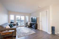 EDGE ON EDGE - Immaculate South-East facing, bright 4th floor 1 BED+PLUS DEN /1 Bath suite in the popular Edge on Edge built by Maclean Homes! Open concept floor plan features 8' ceilings, granite counters, undermount sinks, kitchen w/shaker cabinets & S/S appliances. Large master with walkin closet & cheater ensuite. Front loading in-suite laundry & large den/office space. Covered deck with street parking all around, secure underground parking, 2 pets & rentals allowed! Steps to Shopping, Transit, Restaurants, Rec Center, gyms and Schools! Call today to book your showing!